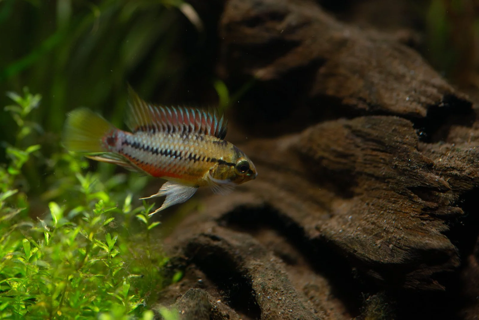 I was torn between German Blue Rams or some type of Apistogramma as the showpiece fish. After a lot of research, I purchased a pair of Apistogramma hongsloi Red Gold from Tristan’s Tropical fish. They were individually bagged and arrived well. They settled in really quick into their new home.